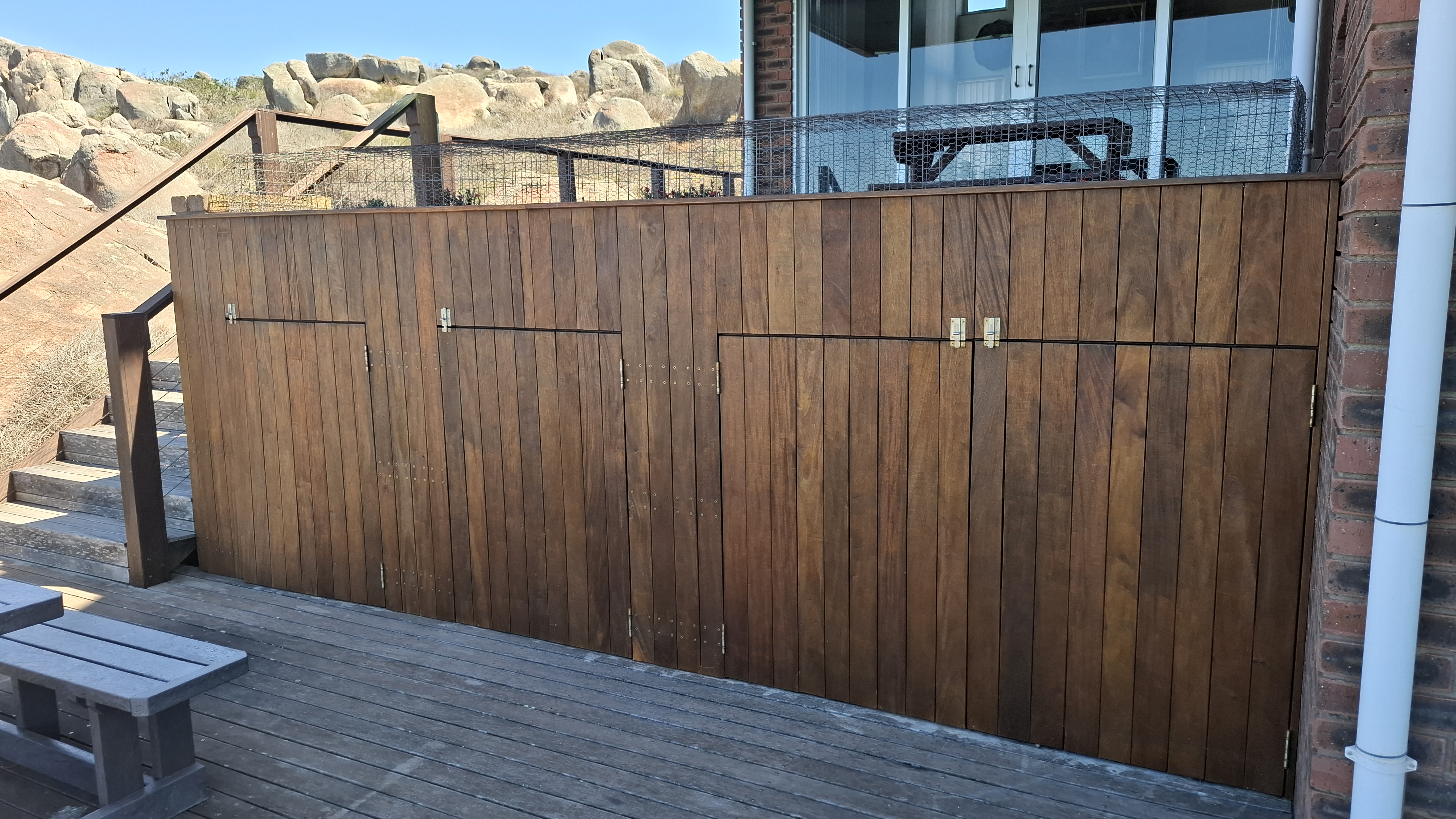 – Wooden deck with storage space underneath for outside braai end swimming aquipment.