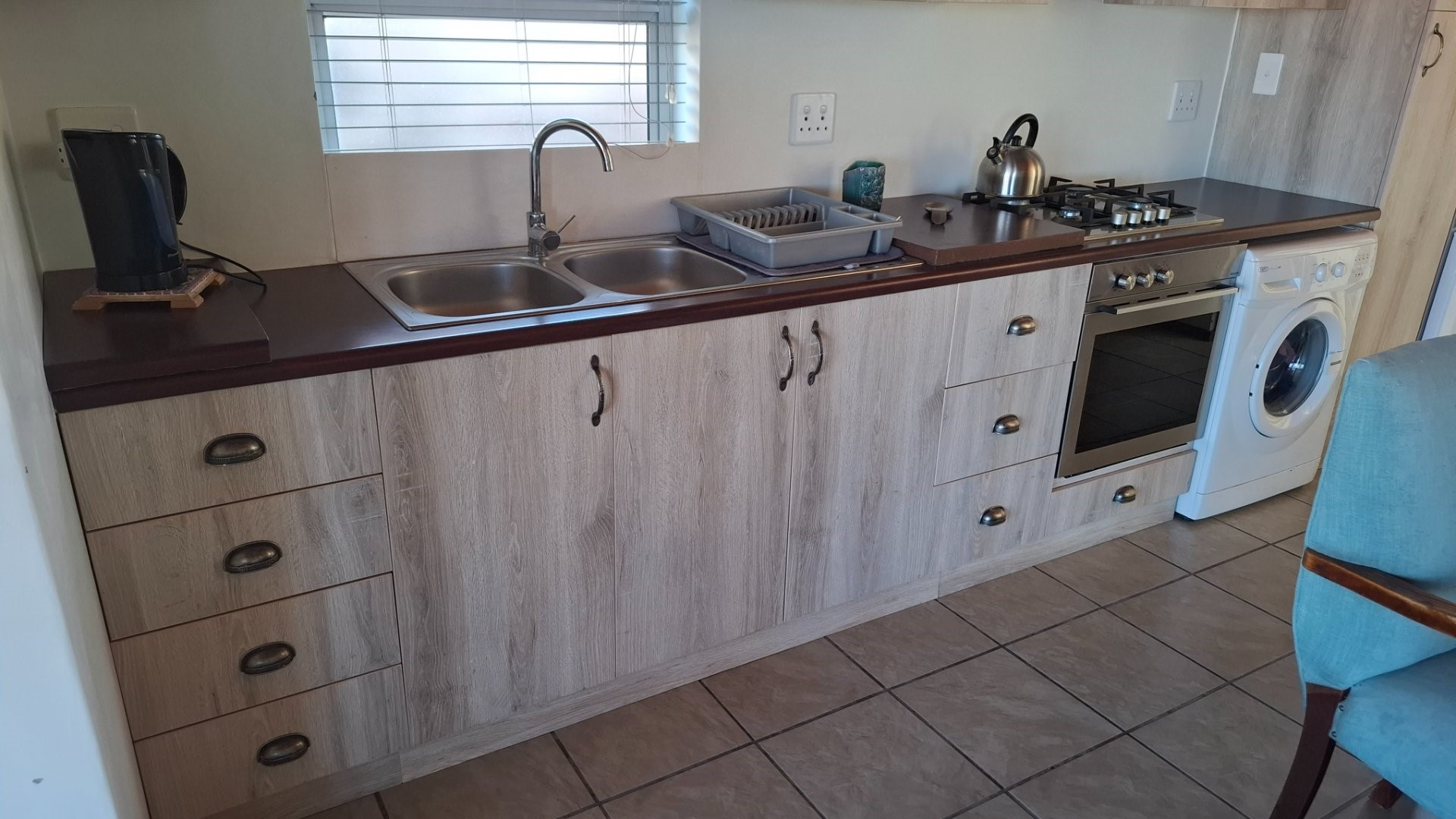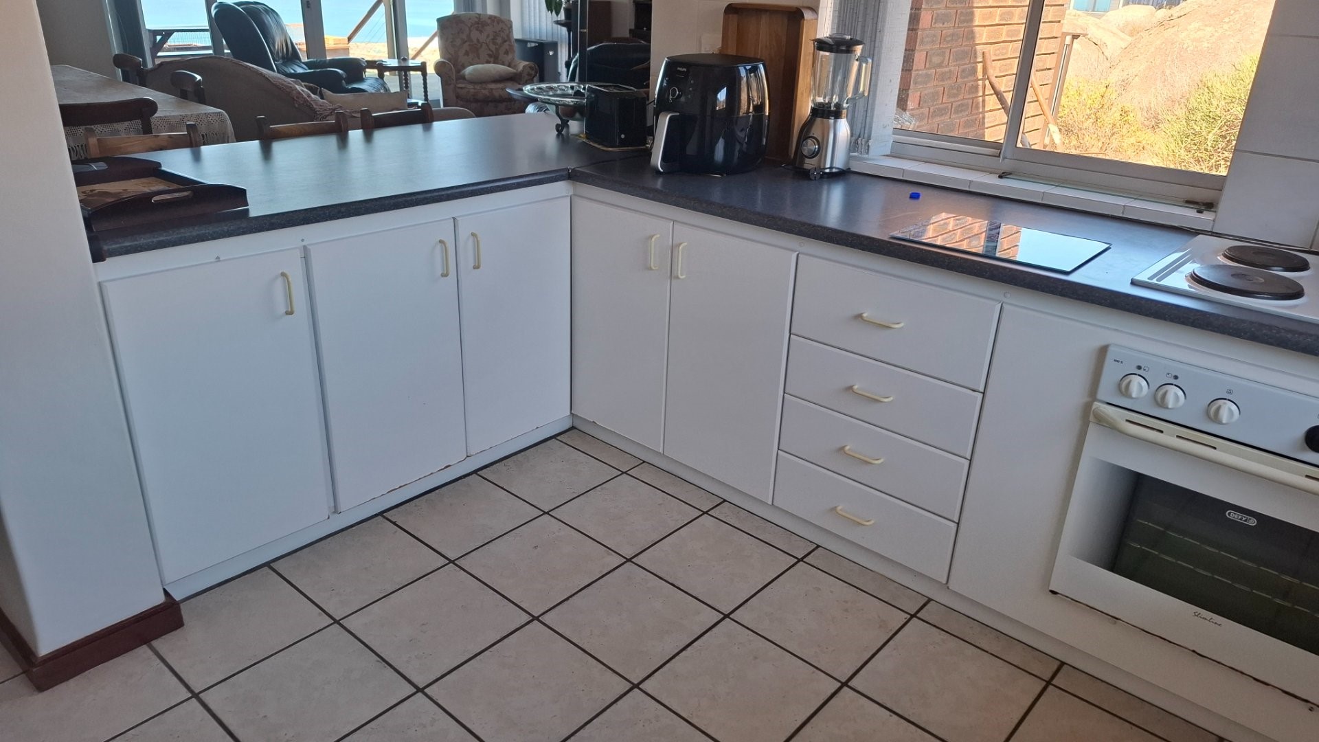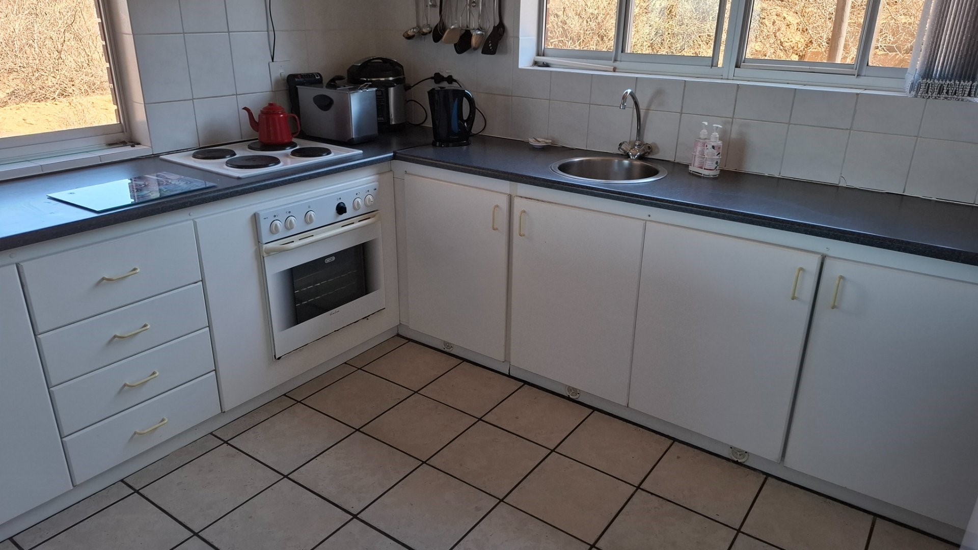 – Open-plan kitchen with ample cupboards and extracting shelves