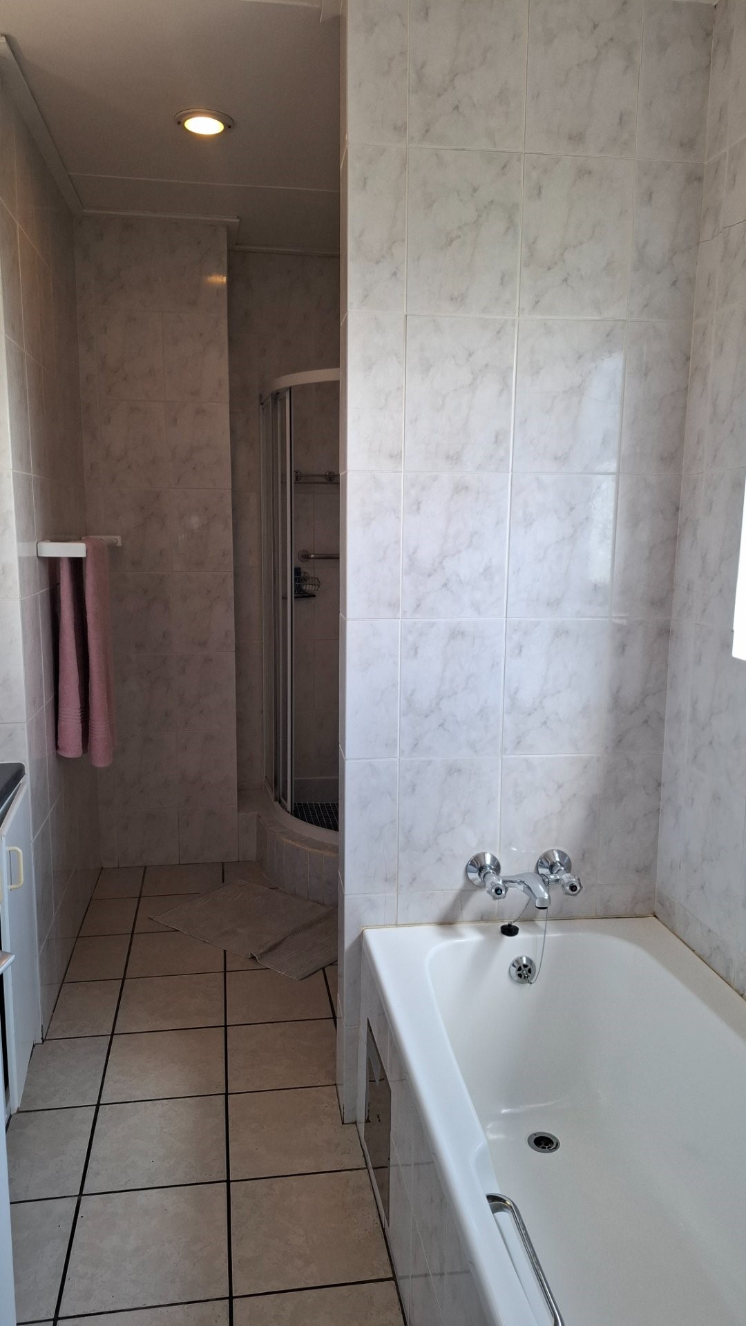 – Bathroom with shower, basin and toilet