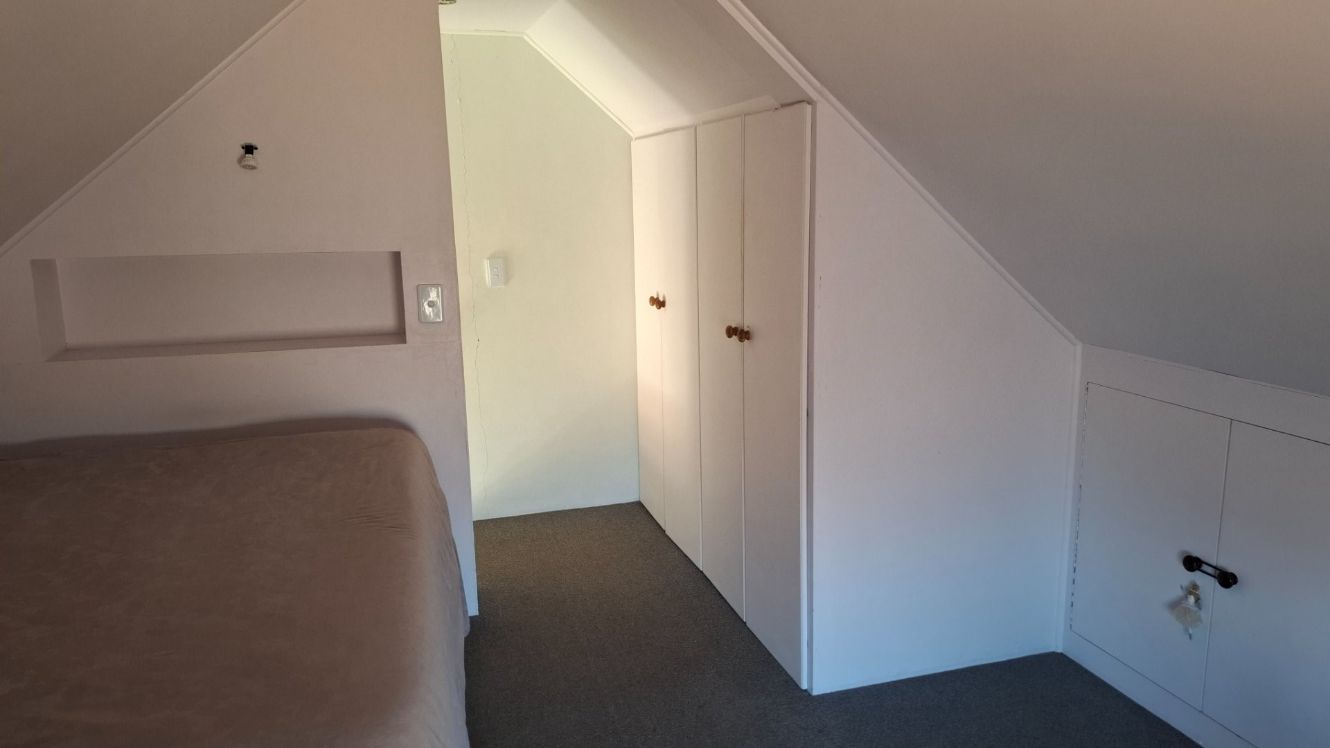 – Loft bedroom with wardrobes and storage spaces